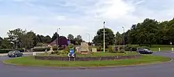 The line had several crossings, with most being ungated and needing watchmen to stop traffic whenever a train approached, as it had been constructed on the principle of being a light railway.[8] Only one crossing, that at Brompton (the Farmer's Arms Crossing), was provided with crossing gates.[17] Military personnel stationed at Catterick Camp had to be the railway picquets, a job that most described as "the worst" at the camp. During winter, when it was bitterly cold, the railway picquets would hold up lumps of coal as a sign to the fireman to throw burning coal onto the trackside to help them keep warm.[25] The section of the route that ran from the Camp Centre towards California station and the power house, travelled through the middle of the roundabout where the A6136 road meets the Scotton Road.[26]