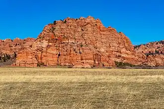 Cave Knoll is a 6,486-foot (1,977 m) summit located in Zion National Park, in Washington County of southwest Utah, United States.[3] Cave Knoll, a formation composed of Navajo Sandstone, is situated in Cave Valley, 11.5 mi (18.5 km) northwest of Springdale, Utah. Its neighbors include Pine Valley Peak, 1.7 mi (3 km) to the northeast, Tabernacle Dome, 1.6 mi (3 km) to the south-southeast, and North Guardian Angel, 2.5 mi (4 km) to the east. Precipitation runoff from this mountain drains into tributaries of the Virgin River. Access to this peak is via the Kolob Terrace Road. This peak's name was officially adopted in 1934 by the U.S. Board on Geographic Names.[3]