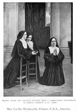 Mrs. Wentworth remained an American citizen despite living most of her life in France.[3] She exhibited her work Prayer at The Woman's Building at the 1893 World's Columbian Exposition in Chicago, Illinois.[4]