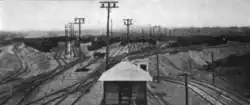 In 1913, the New Haven began adding electrical catenary to the yard as part of its electrification program; electrification was completed by July 1915.[7][8] By 1915, it was apparent the existing yard was not large enough to handle the amount of freight it was receiving. A local newspaper reported that "There were so many freight cars lying in the yard that switchers could not travel from the north to the south end of the yards."[9] The severity of the freight congestion was enough to delay the New Haven's passenger trains through the area as well.[9]