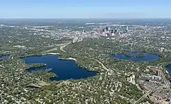 Cedar Lake in 2012. Downtown Minneapolis skyline is visible in the background. | |