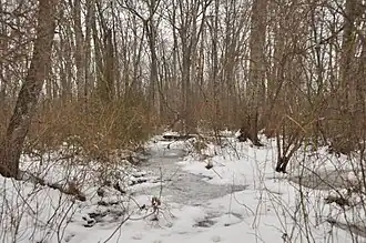 Cedar Swamp Archeological District is a prehistoric and historic archaeologically sensitive area in eastern Westborough, Massachusetts, and extending into the northwest corner of Hopkinton. Cedar Swamp is an area of more than 2,600 acres (1,100 ha) of wetlands that include the headwaters area of the Sudbury River. Archeological surveys of the environmentally sensitive and critical area have identified many Native American sites of interest.[2] It is believed that Native Americans prized wood from the cedar trees that grew in the area.[3] The archeological district, which encompasses much of the Cedar Swamp area, was added to the National Register of Historic Places in 1988.[1]