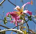Ceiba speciosa, the floss silk tree (formerly Chorisia speciosa), is a species of deciduous tree that is native to the tropical and subtropical forests of South America. It has several local common names, such as palo borracho (in Spanish literally "drunken stick"), or árbol del puente, samu'ũ (in Guarani), or paineira (in Brazilian Portuguese). In Bolivia, it is called toborochi, meaning "tree of refuge" or "sheltering tree".[2] In the USA it often is called the silk floss tree. It belongs to the same subfamily as the baobab; the species Bombax ceiba; and other kapok trees. Another tree of the same genus, Ceiba chodatii, is often referred to by the same common names.