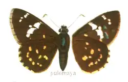 - ^ Beccaloni, G.; Scoble, M.; Kitching, I.; Simonsen, T.; Robinson, G.; Pitkin, B.; Hine, A.; Lyal, C., eds. (2003). "Celaenorrhinus pulomaya". The Global Lepidoptera Names Index. Natural History Museum. Retrieved April 19, 2018.