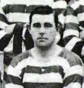 Donald "Donnie" McLeod was a full back who played 155 times for Celtic between 1902 and 1908. He subsequently moved to Middlesbrough and was playing for them when he joined the army. He was a gunner in the 466th Battery of the 65th Royal Field Artillery. It is known that he died of his injuries on 6 October 1917 the cause of them is unknown. However it is most certain that he died in Belgium and was involved (or died) in the Battle of Passchendaele. McLeod is buried in Dozingham Military Cemetery, Westvleteren, Belgium, Plot 5, Row G, Grave 7.[6][16]