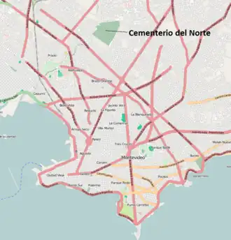 Cementerio del Norte is the largest cemetery in Montevideo, Uruguay, and also the largest green park area of the city. It is located in the barrio of Casavalle in the northern-central part of the city, about 7 kilometres from the centre. To the southwest is Parque Luis Rivero and the barrio of Aires Puros. The barrio of Las Acacias lies to the east.