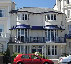 A group of these soldiers registered themselves as Dissenters, as was required by the laws of the time; this allowed them to establish a place of worship in one of the houses built in 1790 at Sea Houses, where they were stationed. In 1803, they founded the "Society of the People Called Methodists" to encourage the spread of their beliefs in the Eastbourne area.[5] The house does not survive: the mid 19th-century buildings at 27 and 28 Marine Parade are on the site.[13]