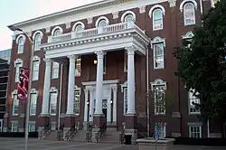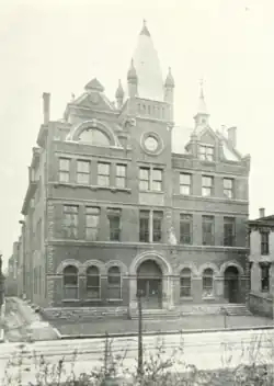The primary campus of Central University consisted of 40 acres in Richmond, Kentucky.[5] Its first and main building, was the three-story University Building, was built in 1874 from bricks made on site.[2][1] It was constructed in the Italianate style and featured a portico with four two-story Corinthian columns.[2] By 1901, this campus included eight buildings, including Miller Gymnasium.[2]