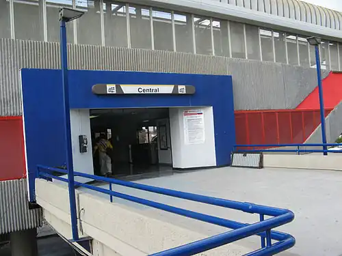The Central Station (Spanish: Estación Central) is a station on Line 1 of the Monterrey Metro. It is located on Madero Avenue in the Monterrey Centre. This station is located on Colon Avenue on the northeast side of the Monterrey Centre. The station was opened on 25 April 1991 as part of the inaugural section of Line 1, which runs from San Bernabé to Exposición.[2][1]