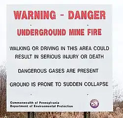 - ^ Rubinkam, Michael (October 31, 2013). "Pa. residents living above mine fire free to stay". Associated Press. Archived from the original on March 5, 2016. Retrieved November 3, 2016 – via Yahoo Finance.