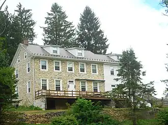 Centre Mills is a historic grist mill located at Miles Township, Centre County, Pennsylvania. It was built in 1802-1803, and is a two-story fieldstone building, with a basement and attic. It measures 44 feet, 10 inches, by 58 feet, and has a gable roof. Also on the property are a barn, stone house, and miller's house. The stone house was built in 1813, and is a two-story stone dwelling, measuring 40 feet by 30 feet, with a two-story frame addition. It features a porch supported by Corinthian order columns. The miller's house is a frame dwelling on a stone foundation.[2] The stone house is operated as a bed and breakfast.