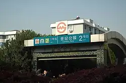 Century Park (simplified Chinese: 世纪公园; traditional Chinese: 世紀公園; pinyin: Shìjì Gōngyuán), formerly transliterated as Shiji Park, is a station on Line 2 of the Shanghai Metro. It is named after the nearby Century Park (and is closest to Exit No. 7 of the park), and should not be confused with the Century Avenue station. This station is part of the initial section of Line 2 that opened from Zhongshan Park to Longyang Road that opened on 20 September 1999.[1][2][3]