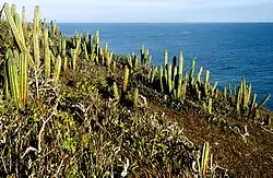 Cereus jamacaru, known as mandacaru or cardeiro,[2] is a cactus native to central and eastern Brazil.[3] and naturalized in South Africa. It often grows up to 5 m (16 ft) high.