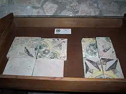 From the 17th–18th centuries, the most flourishing period of ceramic production in Cerreto Sannita and San Lorenzello, numerous artifacts have survived (preserved in the Cerreto Sannita Civic and Ceramic Museum or in the permanent ceramic exhibition curated by the “Giustiniano” Association), along with some examples of floorings. The earliest, chronologically, is likely that of the pronaos of the Monastery of the Poor Clares in Cerreto. The large quadrangular hall features a majolica floor decorated with wind roses and garlands. This decoration is repeated in the flooring of the last chapel on the left in the Collegiate Church of San Martino, likely created by Nicolò Russo and Lorenzo Salandra. Also noteworthy in Cerreto Sannita are the flooring of the penultimate chapel on the left in the collegiate church, created by Domenico Marchitto in 1728, which anticipates the decorative theme used by Nicolò Russo in the flooring of the Church of San Gennaro, particularly in the predella of the main altar, where birds embellish naturalistic motifs. The floorings of the Rosary Chapel in the Church of Sant'Antonio in Cerreto Sannita and the Church of San Giuseppe stand out from traditional decorations, featuring less vibrant colors.[5]