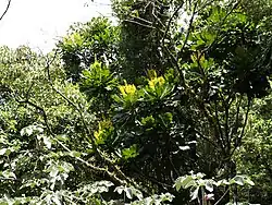 Cespedesia is a genus of flowering plants belonging to the family Ochnaceae.[2] It contains a single species, Cespedesia spathulata.[2] The common name is Membrillo de Montana. At the top of the trunk and any vertical reiterations is a rosette of 1 m (3 ft 3 in) long spatulate leaves which are held in a near-vertical posture.[3]