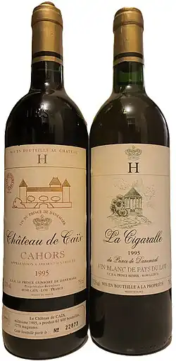 Chateau de Caix Cahors 1995, Château de Cayx Chardonnay La Cigarelle Prince de Danemark 1995