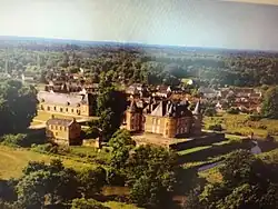 The present stately home was restored by the Maréchal d'Estampes during the first quarter of the 17th century and completed in 1627. It is a high brick building erected on an ancient mound, leveled in a succession of two terraces above the moat.