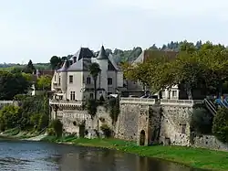 Built on foundations bordered by the river, this modest château has preserved two medieval corner turrets, joining what remains of the old keep.[2]