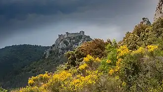 The Château de Puilaurens (Puilaurens Castle, also Puylaurens; in Occitan: lo Castèl de Puèg-Laurenç) is one of the so-called Cathar castles in the commune of Lapradelle-Puilaurens in the Aude département.[1] The castle is located above the Boulzane Valley and the villages of Lapradelle and Puilaurens. There is a path from Axat to the castle.
