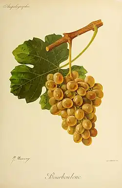 Originally from the departement of Vaucluse, when made into wine it is always blended with other varieties. It brings floral notes and freshness to the wine.[14] |