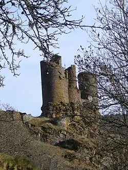The Château du Tournel is a ruined feudal castle in the commune of Saint-Julien-du-Tournel in the Lozère département of France. A former seat of the Barons of Tournel, one of the eight baronies of Gévaudan, it was destroyed during the French Wars of Religion by Huguenot troops under Matthieu Merle.