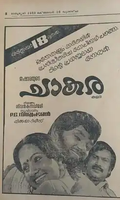 Chaakara is a 1980 Indian Malayalam film, directed by P. G. Viswambharan. The film stars Jayan, Seema, Srividya and Sukumaran in the lead roles. The film has musical score by G. Devarajan. The movie catapulted actor Jayan to superstardom. The movie is based on Gopinath Panangad's novel which appeared in Manorajyam. The film was shot in Chavakkad and various other parts in Thrissur district. The scenes of the beach were fully shot in Chavakkad where the shooting unit halted for more days. The movie also features the evergreen Malayalam song "Suhasiniee Subhashinee".[1][2][3]