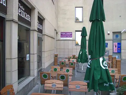 ![]() Synagogue entrance and kosher restaurant, in 2007 | |