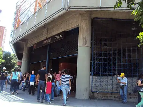 Chacao is a Caracas Metro station on Line 1. It was opened on 23 April 1988 as part of the extension of Line 1 from Chacaíto to Los Dos Caminos. The station is between Chacaíto and Altamira.[1][2]
