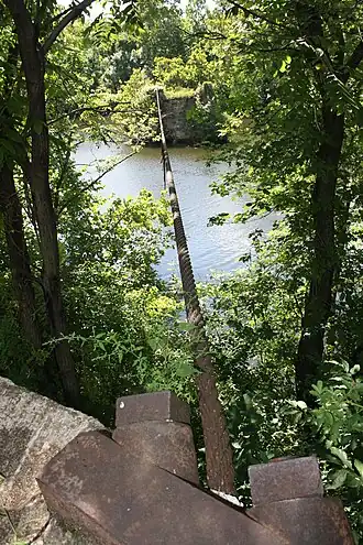 Chain Bridge or Change Bridge, also known as the Lehigh Canal Swinging Bridge and as Wire Towing Path at Pool No. 8, is a historic change bridge spanning the Lehigh River at Palmer Township and Williams Township, Northampton County, Pennsylvania. It was built in 1856–1857, and consists of three stone piers and two spans. Each pier is approximately 30 feet high. In 1972, the bridge consisted of the piers and the cable.[2][3]