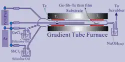 The CVD apparatus for Ge-Sb-Te thin film deposition is shown schematically to the right.