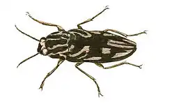 - ^ a b c d Maier, Crystal A.; Ivie, Michael A. (2013). "Reevaluation of Chalcophora angulicollis (Leconte) and Chalcophora virginiensis (Drury) with a Review and Key to the North American species of Chalcophora Dejean (Coleoptera: Buprestidae)" (PDF). The Coleopterists Bulletin. 67 (4): 457–469. doi:10.1649/0010-065x-67.4.457. Retrieved 14 November 2014.