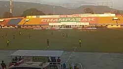The Champasak Stadium or Champassack Stadium is a football stadium in Pakse, Laos. It is the home of Champasak F.C and it is located just north of the Daoruang Market. It has blue and green tribunes and a proper running track around the field. The stadium is sometimes used for ceremonies and concerts. in 2010, when it had a seating capacity of 5,000, it was expanded. The stadium now holds up to 12,000 people. The stadium is named after the region Champasak, of which Pakse is the capital, Laos PDR.