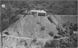 The stamp mill contained 40 1,250 pounds (570 kg) stamps. Ore entering the mill from the tramway went over grizzlies. It then went to stamps which dropped 106 times per minute. Only outside amalgamation was used, and the pulp flowed over 6 feet (1.8 m) amalgamating plates to Frenier sand pumps, which sent it to hydraulic classifiers. The slime was sent to thickeners; the sand was concentrated in three double deck and two single deck Deister tables. The concentrate was de-watered, after which it was ground in a tube mill. The middling was sent to two Union Vanners. Tailing went from the tables to 7 sand vats. From the tube mill, the ground concentrate flowed over a 6 feet (1.8 m) amalgamating plate, fines going to cyanide and portion over 200 mesh returning to tube mill for regrinding.[6]