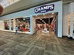 Champs Sports is an American sports retail store, operating as a subsidiary of Foot Locker.[2][3] Products sold at Champs Sports include apparel, equipment, footwear, and accessories. As of June 2019, there were 540 store locations found throughout the United States, Canada, Puerto Rico, and the U.S. Virgin Islands.[2] The stores are mainly located in shopping malls, and are 3,500 square feet (330 m2) on average.