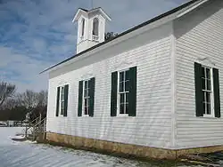 The schoolhouse was built in 1883, in the village of Chana, Illinois. Due to the elimination of the Chana School District, the school was abandoned by the 1960s. A restoration effort was undertaken in the late 1990s, ending with a move and refurbishment in 2002 and 2003. The building now stands in a public park along the Rock River in Oregon, Illinois. Its interior also features architectural elements which set it apart from the typical 19th-century schoolhouse. From a distance, the building is dominated by its bell tower.
