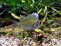 Chanda pulcinella, the humphead glassfish or humphead perchlet, is a species of Asiatic glassfish native to fast-flowing streams in the Ataran basin (itself a part of the Salween basin) in southeast Myanmar and west Thailand.[1][2][3] It reaches a length of 10 cm (3.9 in) and is sometimes seen in the aquarium trade.[3]