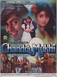 Chandra Mukhi is a 1993 Indian Hindi-language fantasy drama film directed by Debaloy Dey starring Sridevi, Salman Khan, Mohnish Behl and Pran.[1][2][3][4]
