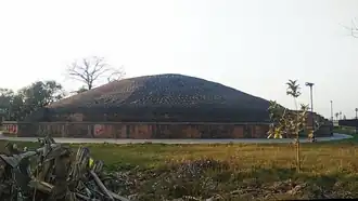 The stupa is hemispherical, made of baked bricks which are layered on each other in a concentric manner.[1][2][3]