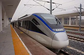 Changsha–Zhuzhou–Xiangtan intercity railway or Changzhutan intercity railway (Chinese: 长株潭城际铁路; pinyin: Cháng–Zhū–Tán chéngjì tiělù), is a higher-speed regional railway in Hunan, China. It connects the provincial capital Changsha with Zhuzhou and Xiangtan. The line was opened to traffic on 26 December 2016.[1] A northwestern extension to Changsha West railway station opened on 26 December 2017.[2][3] The maximum operating speed is expected to be up to 200 km/h (124 mph), travelling time between the three cities will be shortened to less than 30 minutes. The line uses China Railways CRH6F regional rail trains.