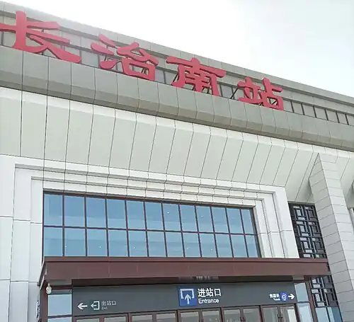 Changzhi South railway station (Chinese: 长治南站) is a railway station in Sudian Town, Shangdang District, Changzhi, Shanxi, China. It opened with the Taiyuan–Jiaozuo high-speed railway on 12 December 2020.[1][2]