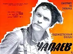 Chapaev (Russian: Чапаев, IPA: [tɕɪˈpaɪf]) is a 1934 Soviet biographical war film, directed by the Vasilyev brothers for Lenfilm.[1] A heavily-fictionalised biography of Vasily Ivanovich Chapayev (1887–1919), a Red Army notable commander of the Russian Civil War, it is based on the novel of the same name by Dmitry Furmanov, a Russian writer and Bolshevik commissar who fought together with Chapayev.[2]