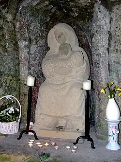 The 1919 statue of 'Our Lady of the Crag' now stands in the grounds of St Mary's Catholic church.[3]