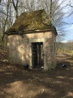 The well is situated opposite the main entrance to the chapel. It is a small structure with a hipped gable roof, again in red brick. The structure is not situated in the usual east–west direction; it was positioned with its front view facing the old town of Beroun.