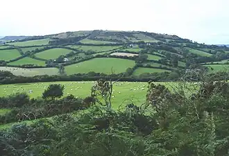Chardown Hill is a prominent, rounded hill, 194 metres (636 ft) high,[1] just to the southwest of the village of Morcombelake in the county of Dorset in southern England. It overlooks the Dorset coast around 1½ kilometres to the south.[2] Its prominence of 63 metres (207 ft) means it is listed as one of the Tumps.[1] It is located within the South Dorset Downs.