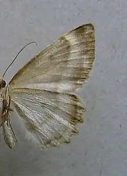 The wingspan is 30–36 mm. There are up to three generations per year with adults on wing from May to June, July to September and up to November.