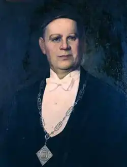 In 1926 Chariton Charitonidis became professor at the University of Thessaloniki. He was the first to teach Ancient Greek at this newly founded university. He was the one who inspired the word emblem of the university «Μούσαις Χάρισι Θῦε» (="Sacrifice to the Muses and Graces").[4] He retired in 1940, having been a dean of the School of Philosophy twice. In 1948 he was elected a full member of the Academy of Athens. He died at the age of 76 from a heart attack.