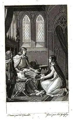Charles Abraham Chasselat, a French historical painter, was the son of Pierre Chasselat. He was born in Paris in 1782, and became a pupil of his father and of Vincent. He exhibited in 1812 'The Repose of Belisarius.' He also illustrated the works of Voltaire, Racine, Molière, and other authors, including the first French translations of Jane Austen's novels in the 1820s.[1] He was employed in making drawings of state ceremonials, as the 'Funeral of Louis XVIII' and the 'Coronation of Charles X' He died in Paris in 1843. His son Henri Jean Saint-Ange Chasselat (1813–1880), a pupil of Lethière, painted historical and genre subjects.