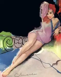 During the 1920s and 1930s, Binger began his career painting film posters for Twentieth Century Fox UK, then served in World War II as a member of the London Fire Service and Air Sea Rescue. He also supplied art for campaigns such as the wartime English Savings Bond Campaign. After the war, he moved to New York City, and began painting covers for Colliers Magazine, Fawcett Publications, Signet Books, Pyramid Books, Pocket Books, Bantam Books, Avon Books, and other publishers.[1] His cover art was used on books by Nathanael West, Aldous Huxley, John Collier, Ray Bradbury, Erle Stanley Gardner and many more.[2] Binger continued to paint movie posters, for such films as River of No Return, Titanic, The Song of Bernadette, Run Silent Run Deep, The Glass Menagerie and The Comancheros. Binger was also a popular pin-up artist. He is perhaps best remembered for his science fiction covers in the 1950s, and for his covers for hard-boiled detective pulps.[3]