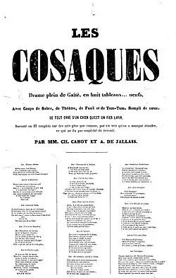 Les Cosaques, drama in 8 tableaux, by Charles Cabot and Amédée de Jallais, 1857 (cover)