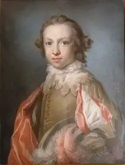 While Charles was a child, he lived with his mother at the Jacobite court at the Château de Saint-Germain-en-Laye where James II of England died on 16 September 1701 N.S., [7] the year of Charles's birth. James II was succeeded by James Francis Edward, whom Louis XIV immediately recognised as the rightful heir to the thrones of England, Scotland and Ireland. Dillon's Regiment, led by Charles's father, fought for France in the War of the Spanish Succession (1701–1714). Louis XIV made Charles's father lieutenant-general in 1706 and comte de Dillon in 1711.[8] However, in 1713 France signed the Peace of Utrecht, recognising the Hanoverian succession and ending its support for the Jacobites.[9] James Francis Edward had to leave France and went to the Duchy of Lorraine, then to Avignon, and finally to Italy. His mother, the dowager queen Mary of Modena, however, stayed behind at Saint-Germain-en-Laye where she died in 1718.[10]
